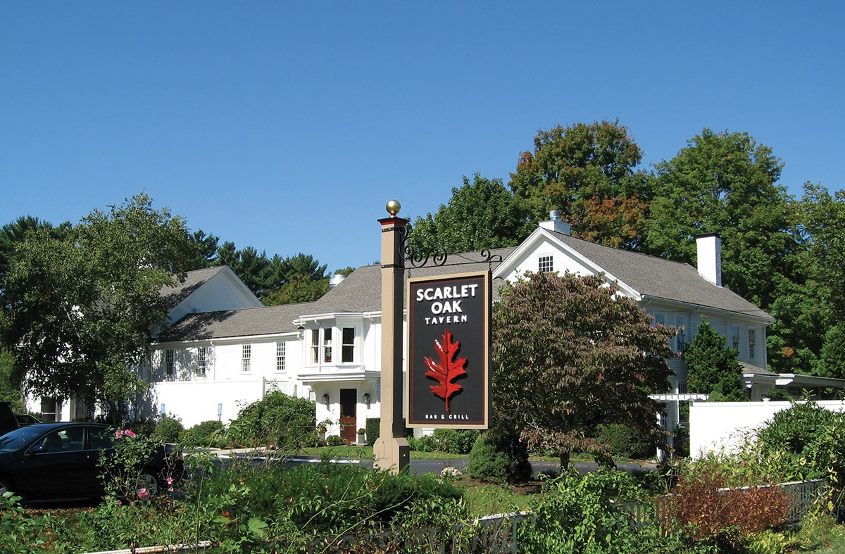 This historic property located at Queen Anne’s Corner in Hingham is home to a popular  South Shore dining spot Scarlet Oak Tavern.