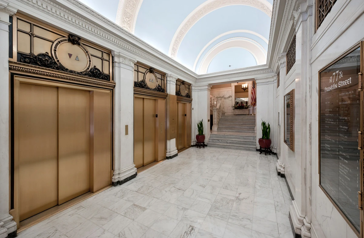 Prime Office Space in Great Financial District location. Owned and managed by A.W. Perry, 77 Franklin is located in the heart of the financial district at the corner of Franklin and Arch Streets, minutes from all MBTA lines, parking, health clubs, restaurants and shopping. Elegant lobby, great window line, on-site management, 24-7 access and security.